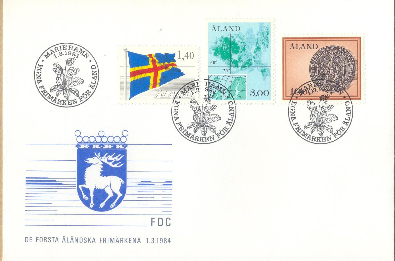 First-time visitors to the Åland Islands, an archipelago of some 6,500 islands and islets between Sweden and Finland at the entrance to the Gulf of Bothnia, can be excused if they feel confused. Though the islands belong to Finland, hardly any of the inhabitants speak Finnish. Swedish is Åland's sole official language, and that is what you see on street signs and restaurant menus. But the currency is the euro, as in Finland. The reason for the muddle is the islands' chequered history. Once part of the kingdom of Sweden, Åland was ceded to imperial Russia in 1809 together with Finland. It has remained part of Finland since Finnish independence in 1917. Today the islands are autonomous, which is partly responsible for their economic prosperity. When Finland joined the European Union in 1995, Alanders' rights were set forth in a separate protocol. They are allowed to make their own tax laws, and to make tax-free sales to their numerous visitors. This FDC given to me by Pia illustrates the important facets of Åland on the three pretty stamps.