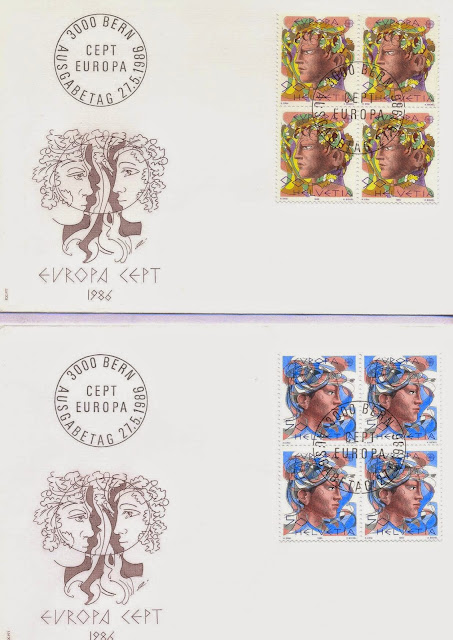 The set of two Swiss stamps on these two FDCs were issued as per the theme of EUROPA CEPT stamps in 1986, name "Nature Conservation".