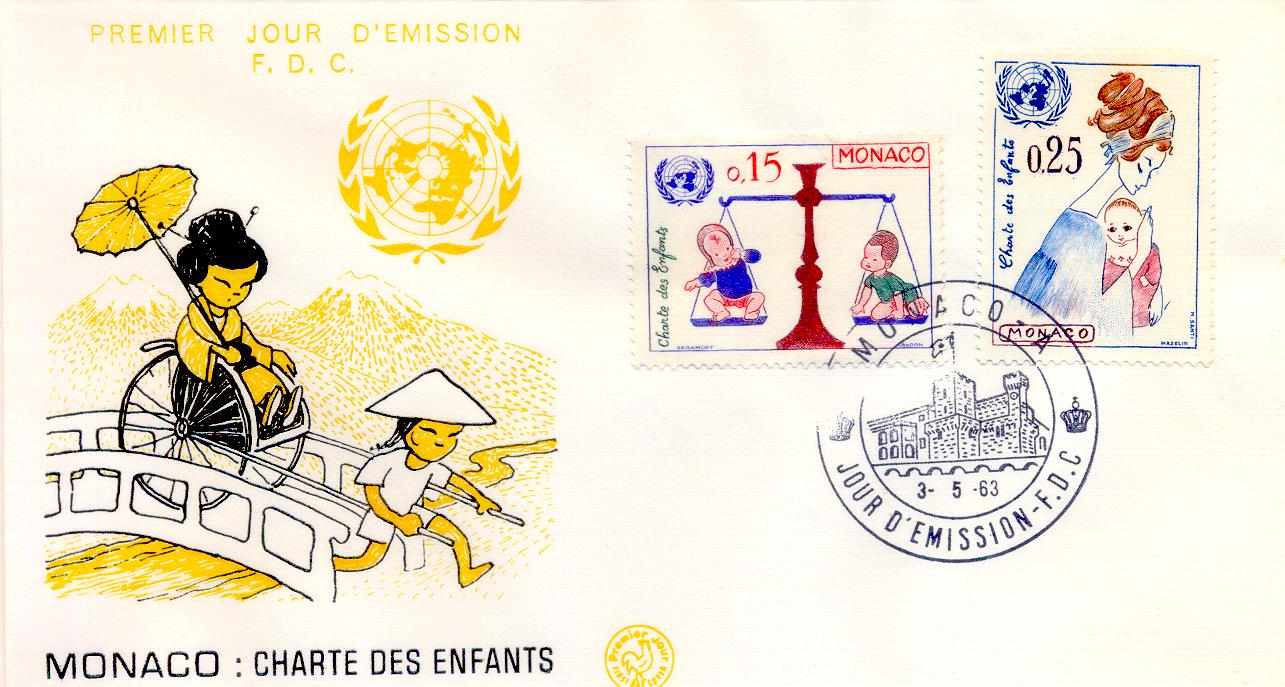 Monaco commemorated the 4th Anniversary on Rights of the Child (UNCRC) with these eight preety stamps on the FDCs, which also have appropriate drawings which compliment the message on the stamps.